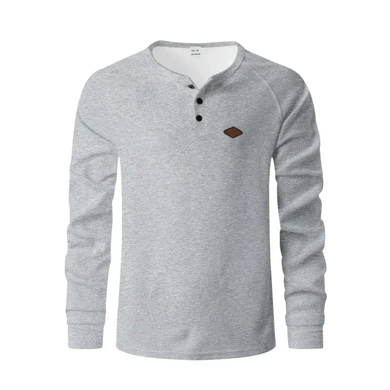 Korosta päivittäistä tyyliäsi vaivattomasti tällä hienostuneella pitkähihaisella Henleyllä. Hienovarainen röyhelötekstuuri ja siisti, minimalistinen viimeistely antavat tälle T-paidalle ajattoman ja elegantin ilmeen. Täydellinen modernille miehelle, joka haluaa yhdistää mukavuuden hillittyyn ja ylelliseen tyyliin.