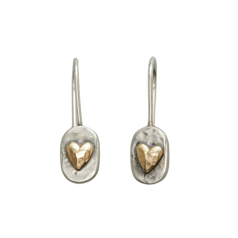 Nämä kauniit vintage-tyyliset korvakorut yhdistävät elegantisti hopeapinnan lämpimään kultasydämeen keskellä — ajaton muotoilu, joka säteilee rakkautta, naisellisuutta ja tyyliä.