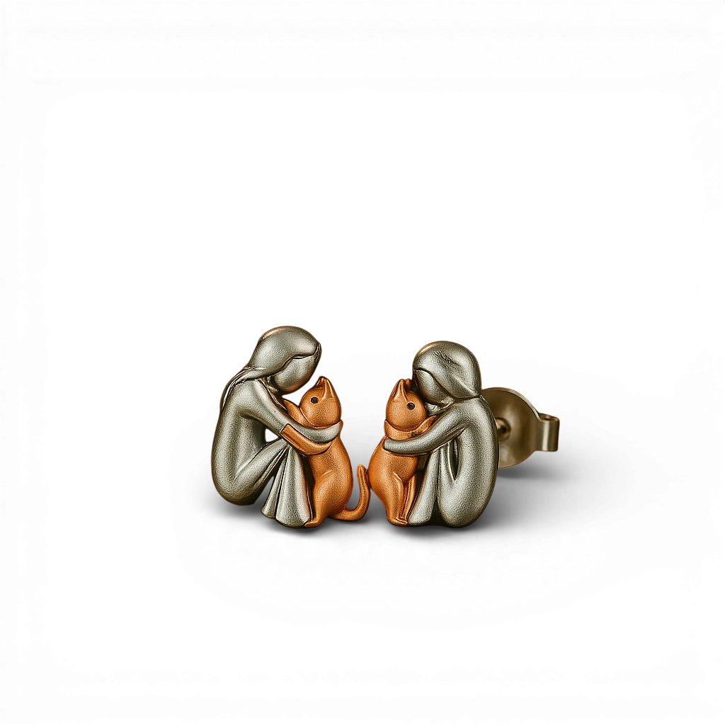 Tartu puhtaaseen iloon ehdottomasta rakkaudesta näiden herkän korvakorujen avulla, joissa tyttö halaa rakastettua kissaa. Valmistettu kiillotetulla kaksivärisellä hopea- ja ruusukultapinnalla, nämä merkitykselliset korvakorut juhlistavat erityistä sidettä sinun ja kissasi välillä – täydellinen muistutus siitä hiljaisesta lohdusta, jota vain kissa voi tarjota.